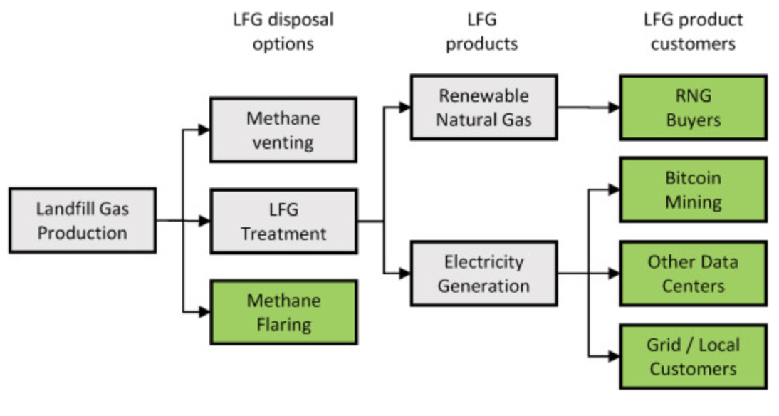 2024年8月,科学研究提出"垃圾填埋气发电与比特币挖矿一体化框架"等创新模式,展示工作量证明(PoW)挖矿如何利用垃圾填埋场的甲烷排放。该过程不仅能减少强效温室气体,还可将其转化为可用电力。