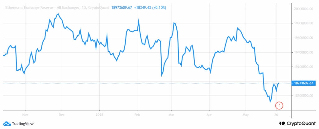 链上数据显示,ETH交易所储备七日净增26万枚(价值6.8亿美元),这是近四周来首次转正。该指标已回升至去年8月底支撑位水平。