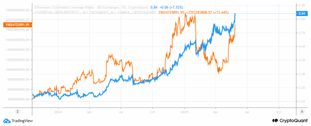 ETH合约未平仓头寸快速恢复至2月初水平,估算杠杆率更创历史新高,显示投资者风险偏好持续增强。