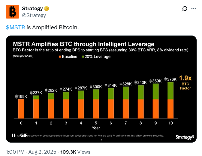 据公司说明,该模型通过稳定的比特币增长和股息策略,试图超越普通BTC回报。过去几年其股票涨幅持续跑赢比特币百分比涨幅。这种策略还催生了追踪比特币价格的新型投资产品,虽然提供更多风险敞口,但风险也随之增加。即便在弱势市场中,这些产品的热度表明市场仍在探索支持比特币的新方式。