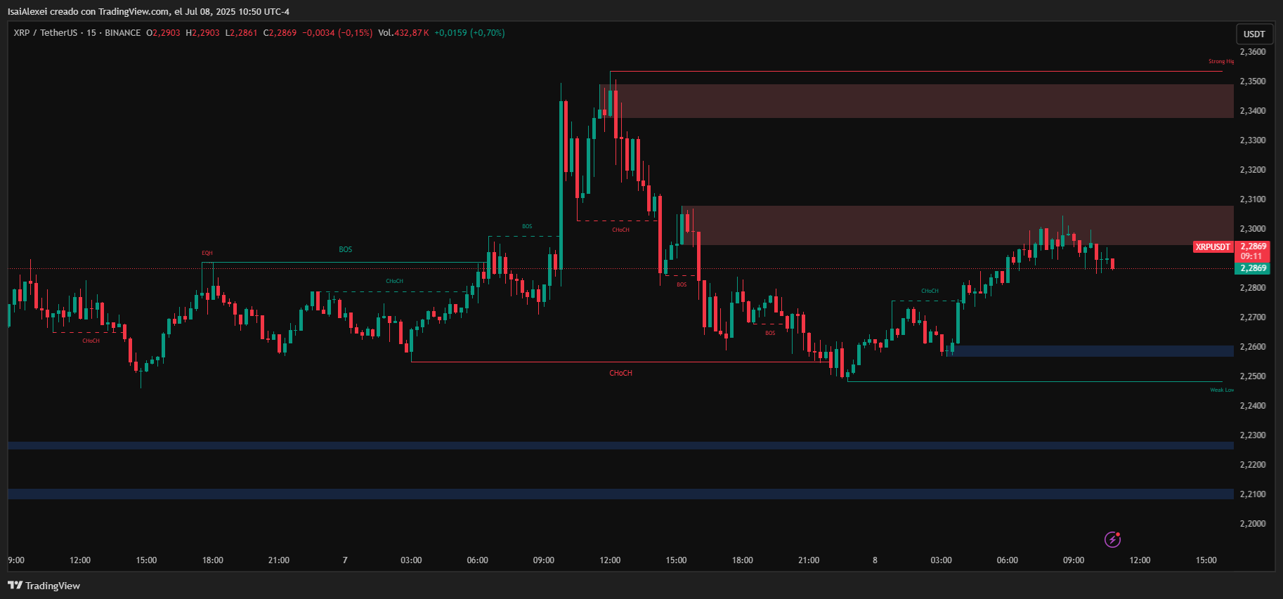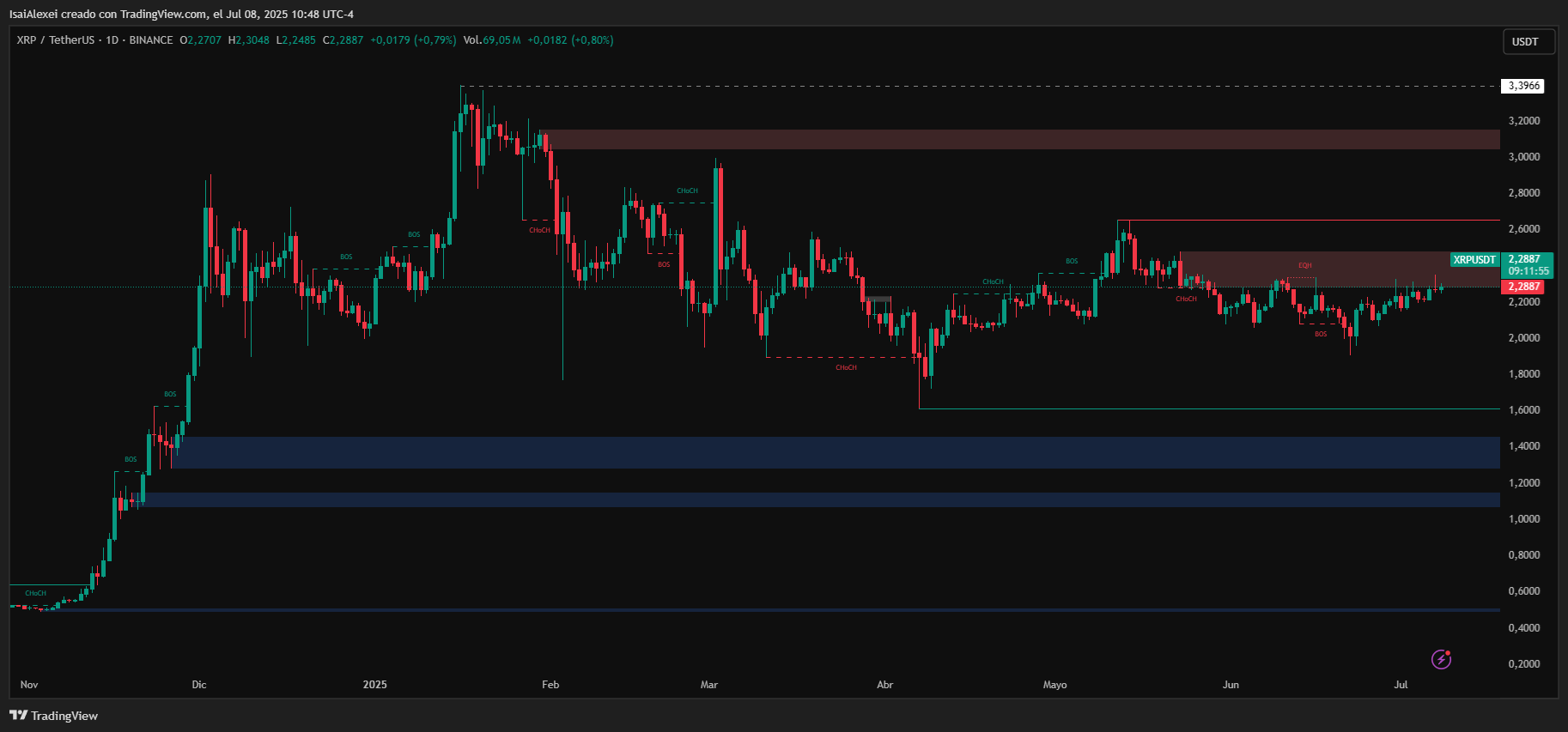 XRP正处于突破临界点。若带量突破2.35美元,ETHNews分析师预测将快速上探2.80-3.40美元区间;若未能守住2.20支撑位,可能下探1.95美元。