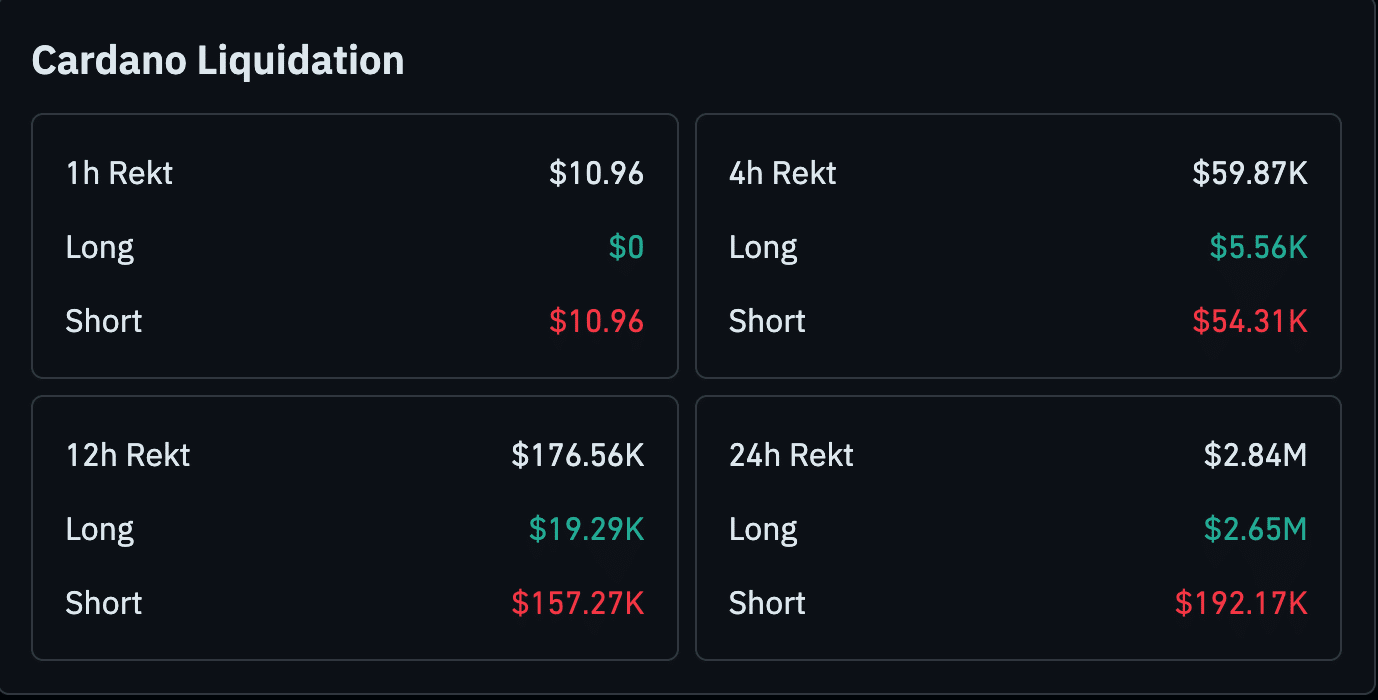 最新清算数据显示,过去24小时ADA杠杆市场活动激增,总清算金额达284万美元。其中多头头寸清算265万美元,空头仅19.2万美元。