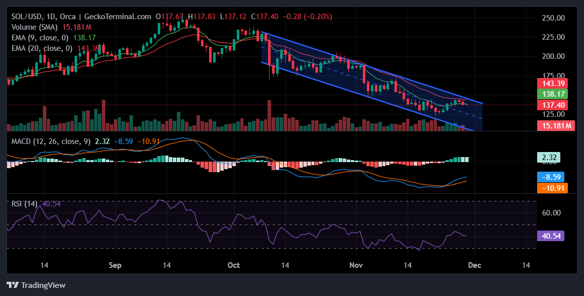 然而,SOL正试图突破下降价格通道的上轨。若能成功突破这一阻力位,可能会为SOL带来势头和力量的看涨转变。