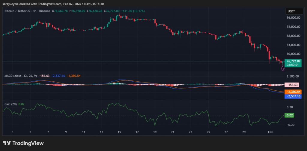 从图表走势看,比特币价格可能下探77,429美元支撑位。若出现强力看跌修正,或将引发死亡交叉,推动价格进一步跌向77,201美元。倘若市场动能转强,多头或尝试推高价格测试77,840美元阻力位。持续的上行压力可能促成黄金交叉,助力价格重返7.8万美元上方区间。