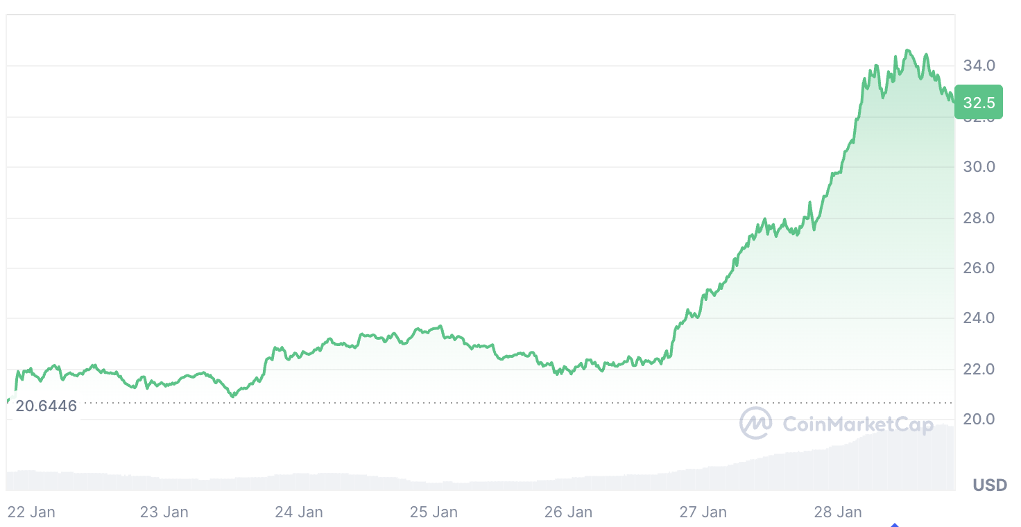 Hyperliquid成为链上商品交易焦点。2026年1月下旬,该平台白银期货日交易量约达10亿美元,白银交易活跃度仅次于比特币与以太坊。相关代币HYPE同期涨幅超20%。