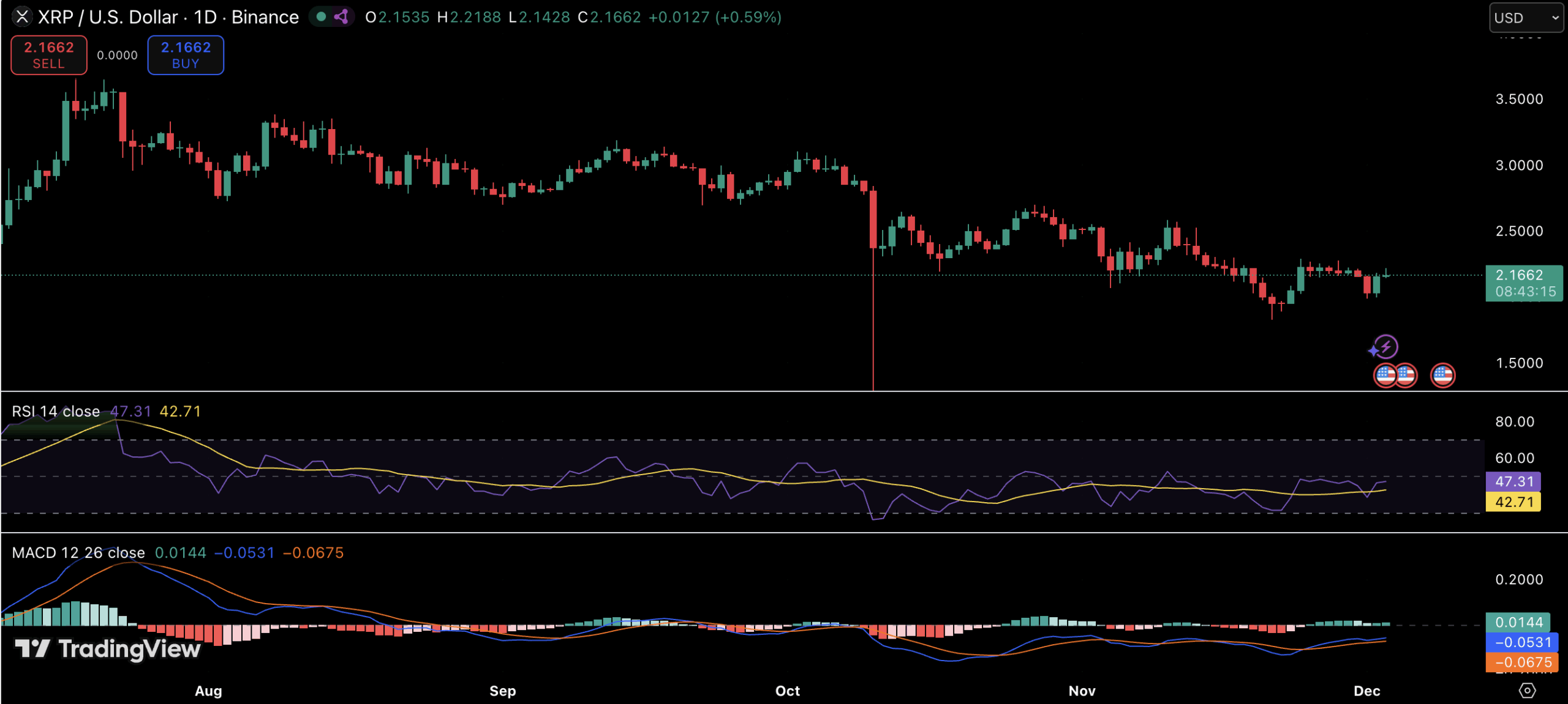 关键要点:XRP正坚守2美元的关键支撑位。交易所数据显示现货和期货交易活跃。相对强弱指数和移动平均收敛 divergence 指标仍显示动能疲软。