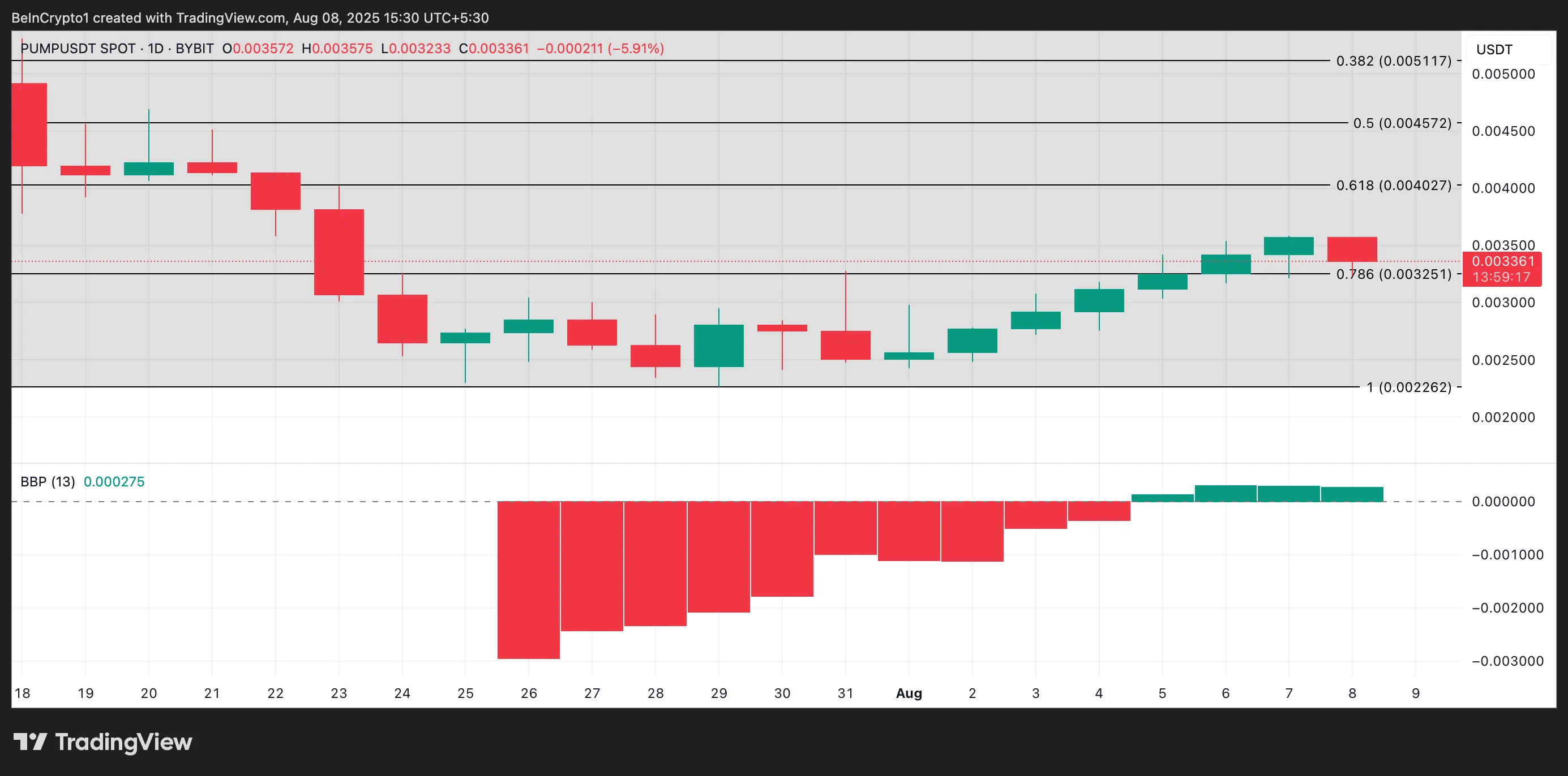 Elder-Ray指数通过分离分析多空力量来衡量市场买卖压力平衡。正值表明买方占据主导并推高价格。若PUMP买方持续控盘,代币价格或可上探0.0040美元。