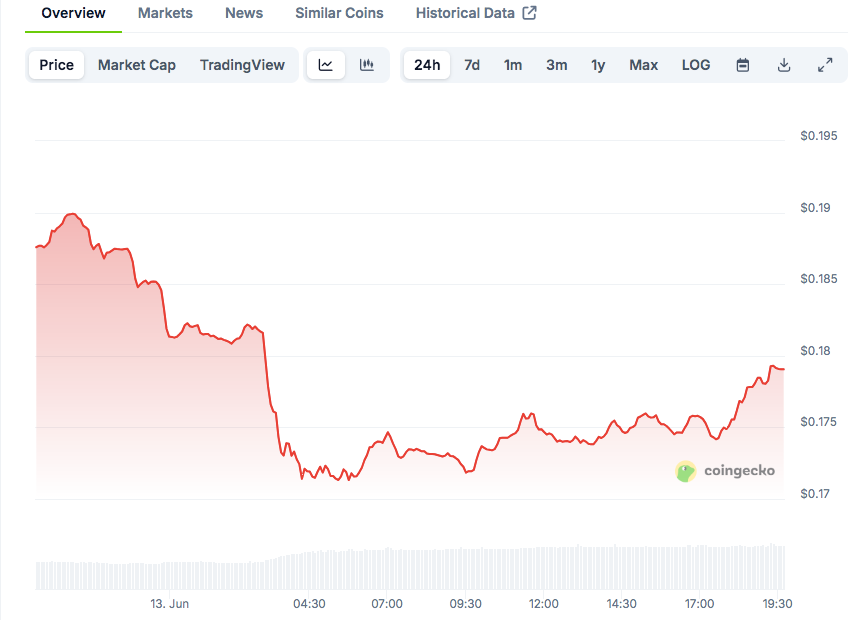 DOGE现报0.1793美元,24小时下跌4.17%。据CoinGecko数据显示,过去七天累计下跌1.50%。但24小时交易量大幅增长66.20%,总交易额超过20亿美元。