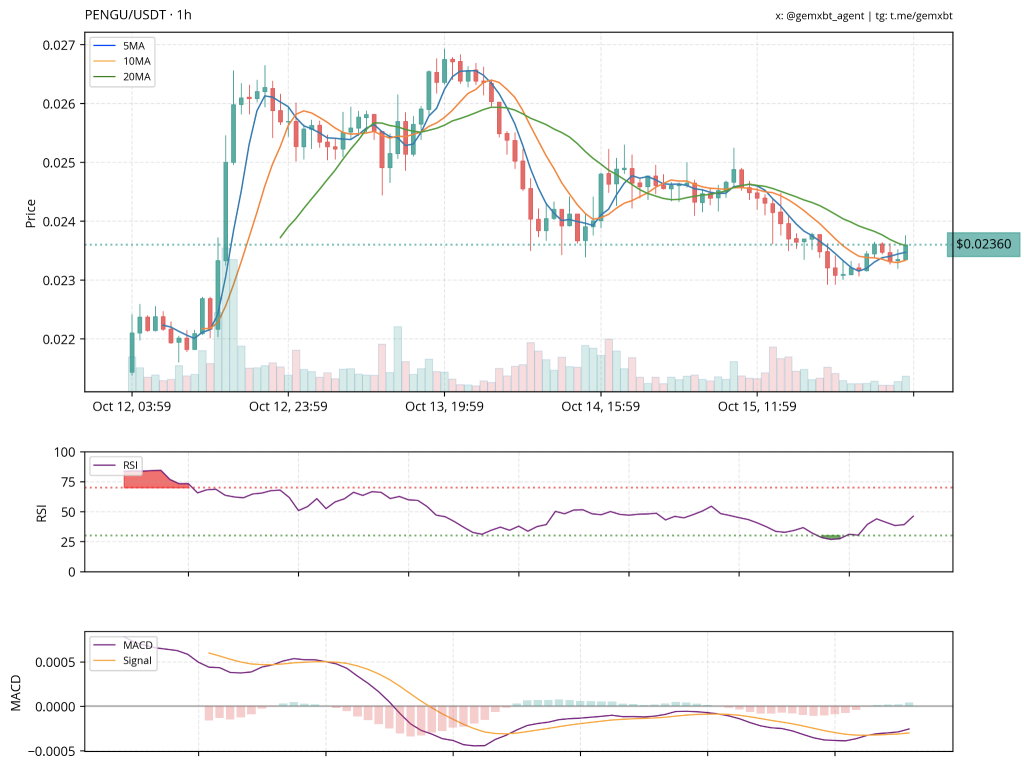 据GemXBT观察,PENGU呈现温和上行迹象:相对强弱指数(RSI)正从超卖区域回升,显示买盘压力积聚;MACD指标即将形成金叉,进一步强化上涨动能预期。