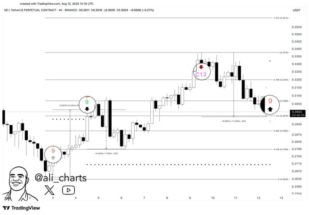 在其发布的图表中,最新信号显示为绿色"9"蜡烛,这通常是价格可能反转上行的历史信号。该信号出现在SEI跌至0.30美元水平后,暗示市场或已准备好反弹。