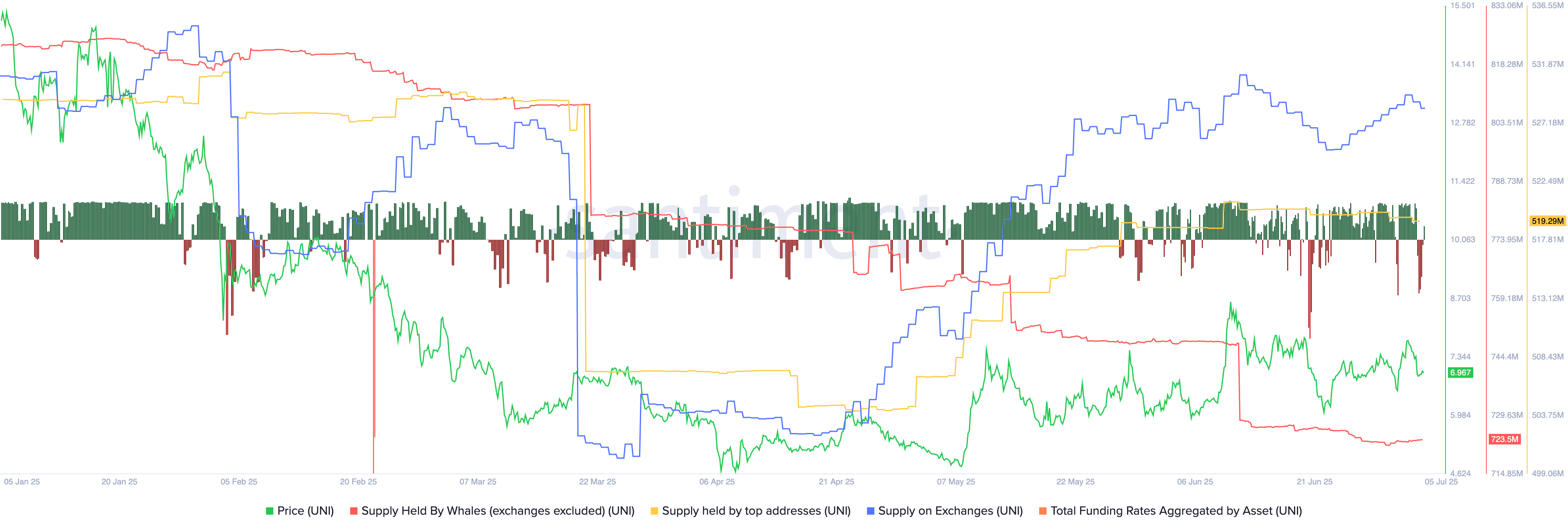 UNI资金费率亦进入负值区间,暗示投资者预期未来价格将进一步走低。