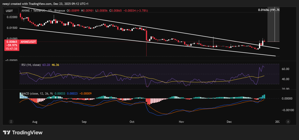 ANIME的价格强势反映了技术突破、叙事兴趣重燃以及动量指标改善的综合作用。与供应和过往估值相关的结构性风险仍是讨论的一部分,这使得市场预期保持理性。