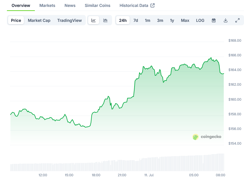 • 159美元处存在关键阻力位,清算集群可能决定短期价格方向