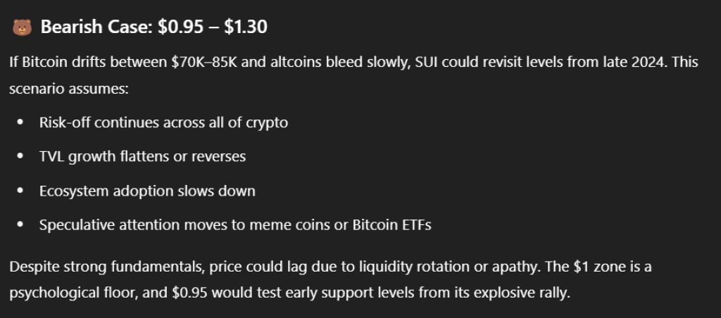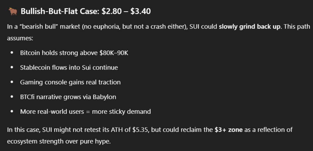 在当前相对平淡的市场环境下,我们决定请ChatGPT预测一下,如果牛市确实结束,SUI的价格会如何变化。正如你可能知道的,许多分析师和专家预测,牛市要么已经结束,要么未来将不再有典型的4年周期。