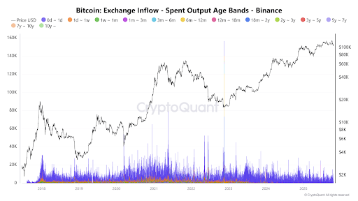 2025年下半年,比特币价格从12万美元区间回落至11万美元附近。该跌势与0-1日链上流入量激增同步出现,表明短期交易者正在平仓。交易所活动升温通常预示着投资者在为预期波动性进行流动性调整。