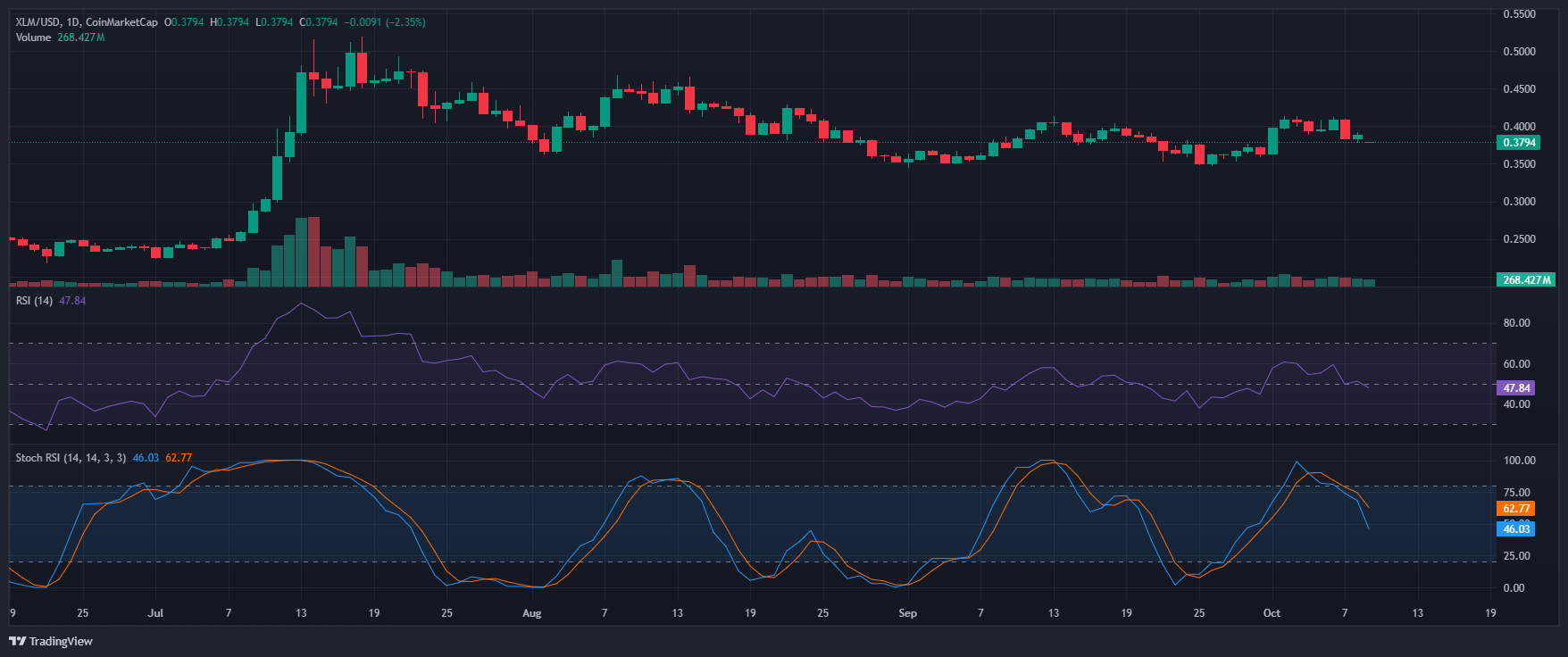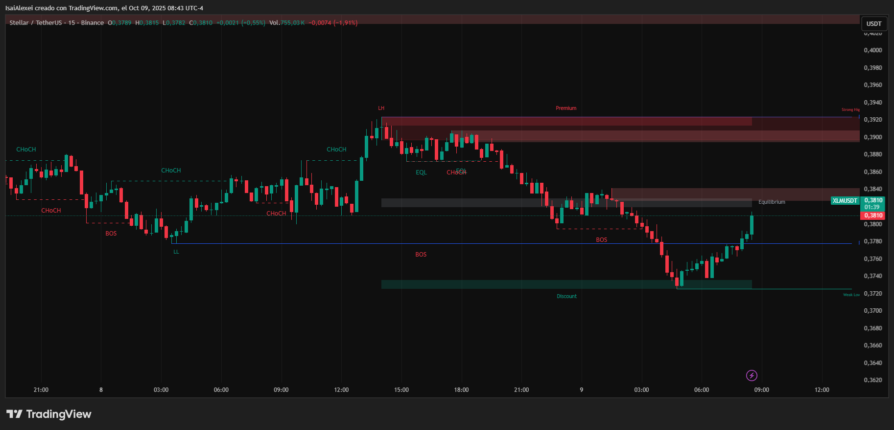 从技术面看,XLM正处于再积累阶段,目前于0.373-0.391美元区间震荡。相对强弱指数(RSI)维持在52的中性区域,显示多空动能平衡。