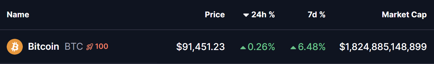 比特币近期跌势使其直抵楔形下轨80,925美元附近,此时多头强势反击并阻止了进一步下跌。自此开始的反弹推动价格重回91,624美元,显示出需求复苏与短期动量潜在转变的迹象。