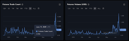 未平仓合约是反映市场参与者对期货价格预期的重要指标。当前该指标突破历史峰值,表明交易活跃度急剧上升,新资金正持续涌入平台。随着市场流动性增强,多头与空头持仓量同步增长。