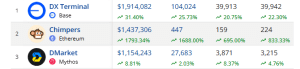 链上加密数据聚合平台cryptoslam.io统计显示,Chimpers系列NFT今日交易量呈现显著增长。在过去24小时内,该系列创下140万美元交易额,较前一日激增1793%。