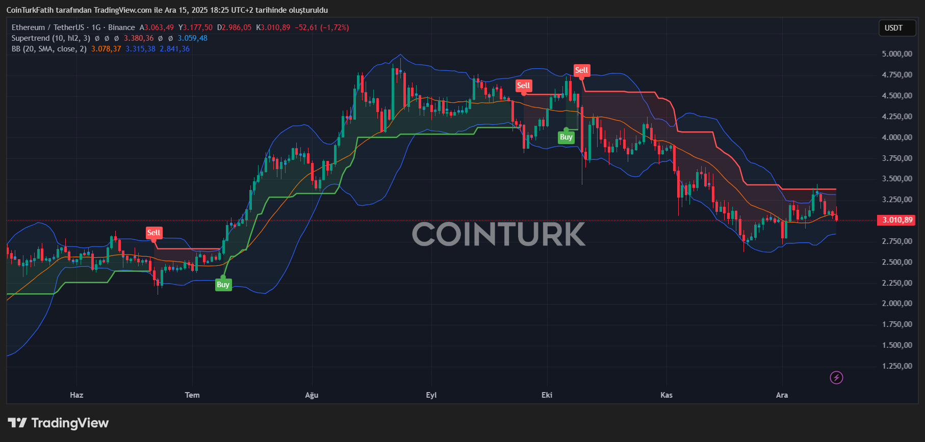 正如预期,加密货币今日开启下跌行情,具体原因可参考此前报道。若抛售持续,ETH或将测试2814美元和2638美元支撑位。尽管在10月10日的市场崩盘中ETH成功守住3400美元关口,但市场的进一步恶化已使该关键区域转化为阻力位,导致价格出现更深跌幅。