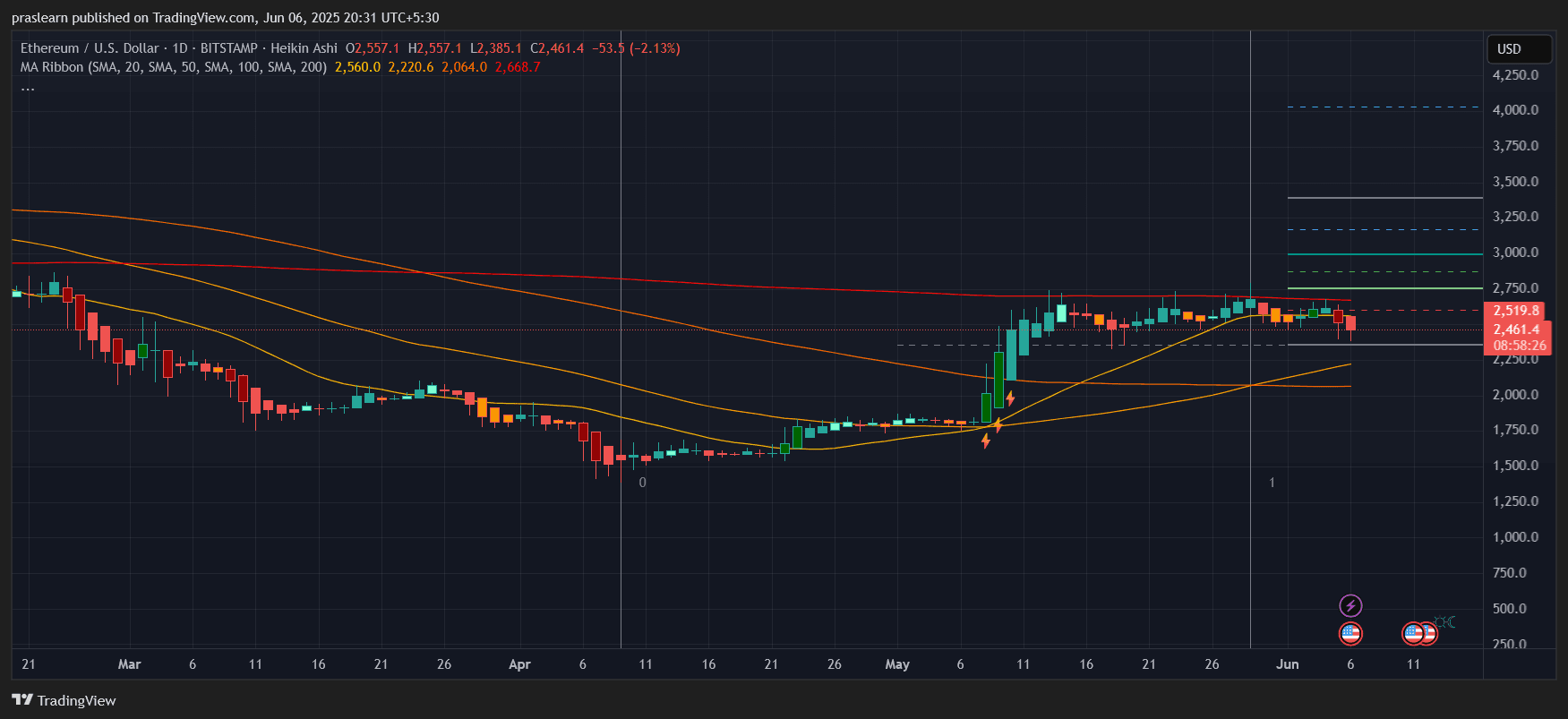 以太坊(ETH)价格分析:能否在2025年6月冲击3000美元甚至历史新高?