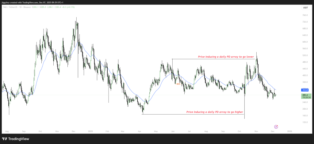 Bittensor (TAO) 正步入关键阶段,其首次减半事件将于12月12日发生,交易员们正试图解读此举对价格的影响。该事件将使新增供应量减半,仅此一点就推动TAO价格在数周疲软后重返283美元区域。与此同时,整体市场仍显震荡,因此TAO持续在小幅反弹与快速回调间徘徊。尽管如此,该网络仍通过新增子网、更高收益和新型投资产品持续扩张。这一切都在塑造TAO迈向2026年的发展轨迹。
