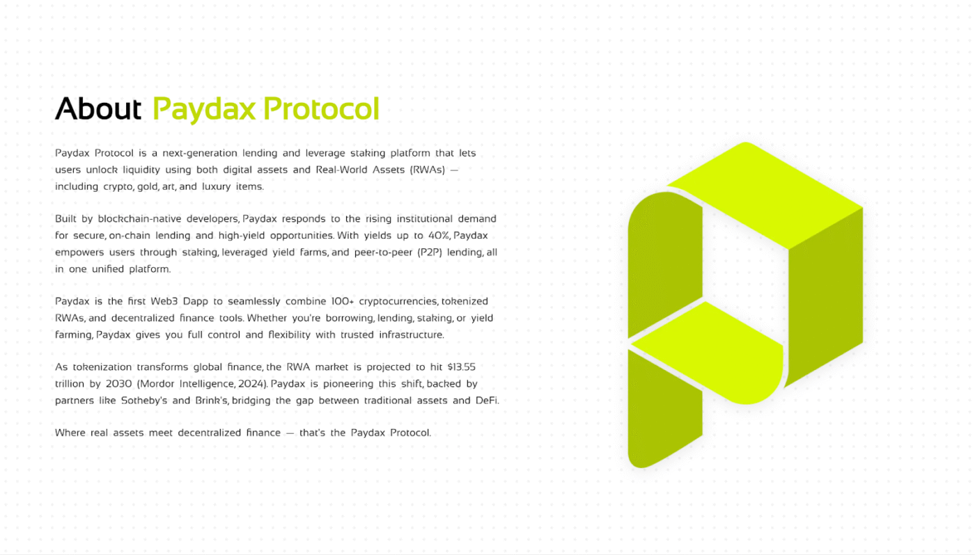 借款人在PayDax经济中也获得重大升级。用户无需出售资产获取现金,而是可以将加密货币或代币化现实世界资产(如奢侈手表或艺术品)作为抵押品,通过苏富比和布林克公司进行代币化存储,即时获得流动性。