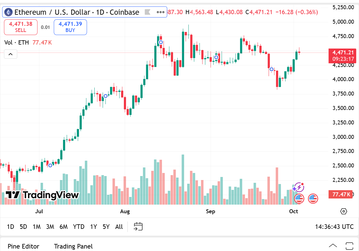 以太坊当前价格为4,471.38美元,单日涨幅2.23%,其5,417.8亿美元市值和471.1亿美元交易量(增长9.27%)反映出市场情绪。这种新动能源于投资者对Layer 2解决方案、跨链DeFi以及实用型加密资产的兴趣,他们正密切关注2025年最具潜力的加密预售机会。
