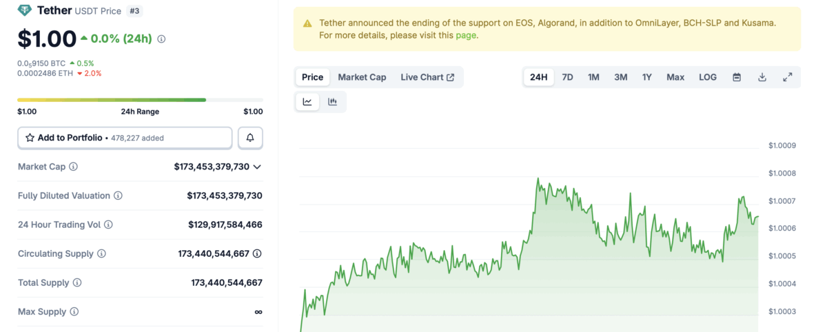 USDT价格图表 | 来源:CoinGecko