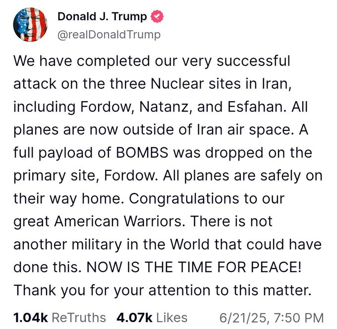 美国总统唐纳德·特朗普披露惊人消息,称美军战机轰炸了伊朗福尔多、纳坦兹和伊斯法罕三处核设施。这标志着中东冲突的重大升级,也是美国正式介入伊朗与以色列战争的信号。