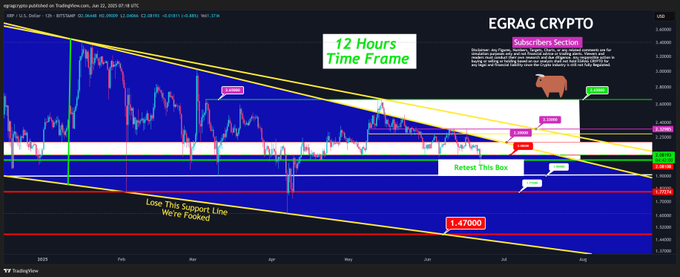 EGRAGCRYPTO认为2.08美元是首要阻力位。他指出XRP价格此前曾突破该水平,目前正进行回踩测试——若12小时收盘价站稳2.08美元上方,将打开通往2.30-2.33美元狭窄区间的通道,该区域可能成为突破的重要转折点。