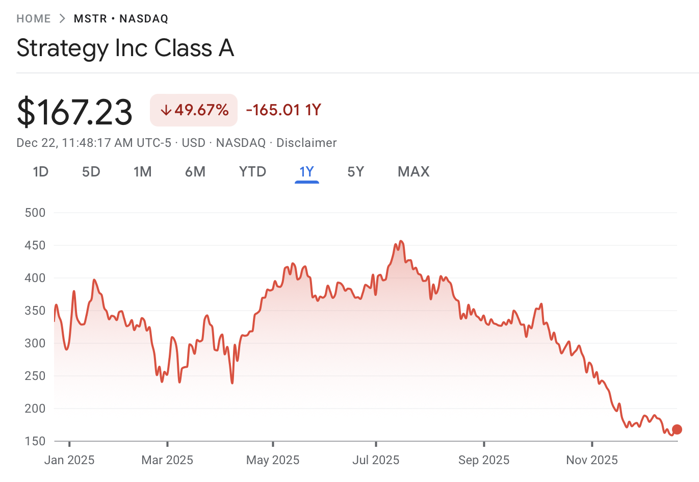 根据谷歌财经数据,Strategy普通股在过去12个月内下跌近50%。