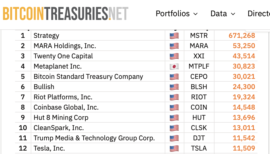 比特币矿企MARA Holdings作为第二大企业持有者拥有53,250枚比特币,2025年内跌幅约38%。