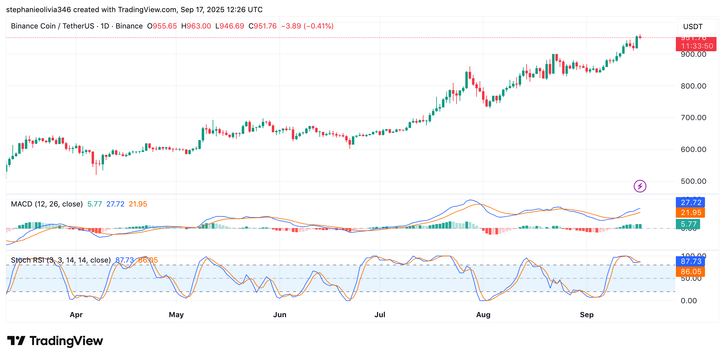 币安币(BNB)已突破自2024年底形成的下降通道。经过数月的盘整后,近期价格走势显示出明确的上行趋势。周线图呈现稳定上涨,最近几个交易时段由买方主导。
