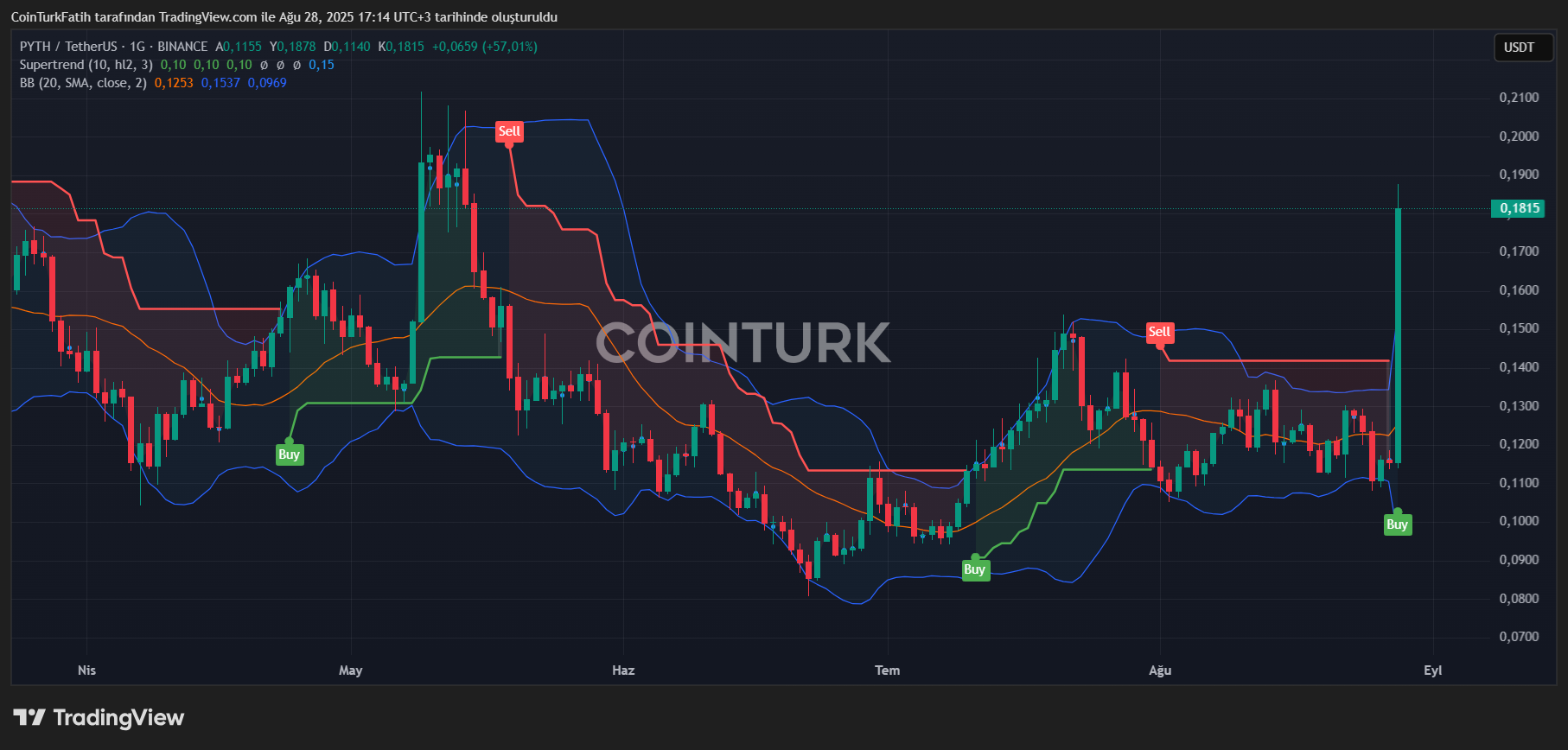 公告发布后,Pyth价格从0.117美元飙升至近0.19美元,涨幅超过50%。Pyth Network官方账户声明: