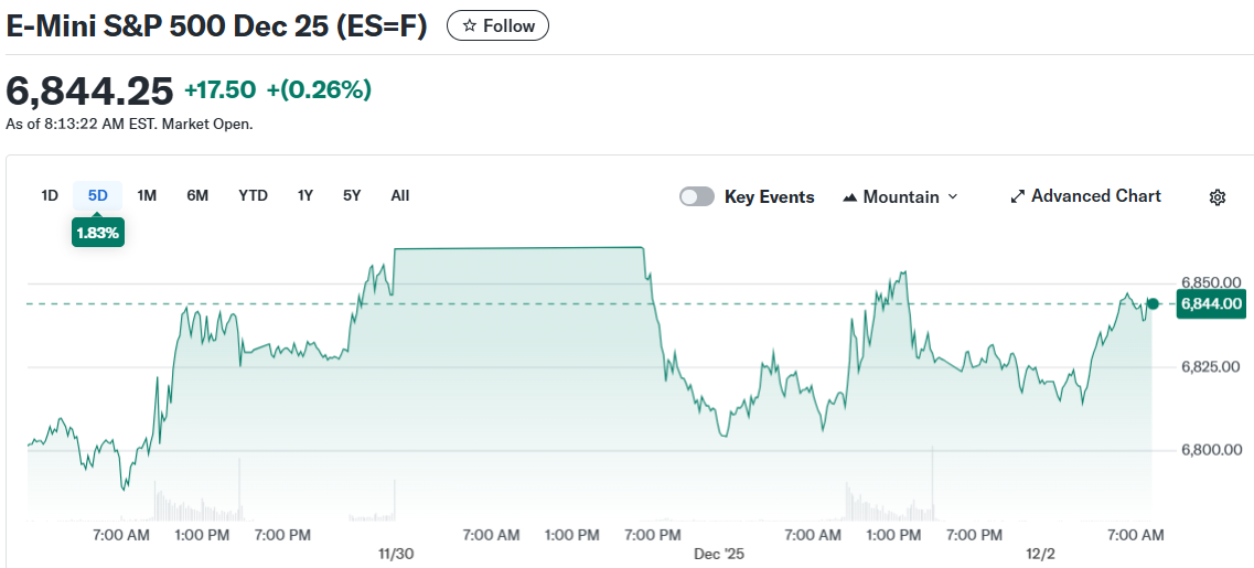 美股期货周二早盘走低,投资者评估12月交易开局。主要指数合约微跌0.2%,此前下跌行情终结了连续五日的涨势。