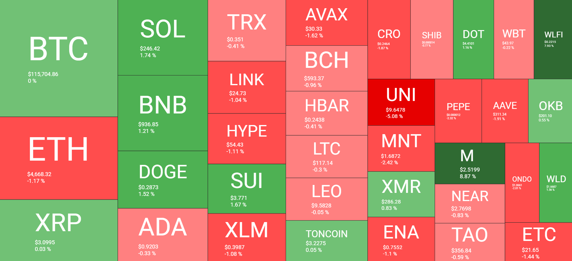 过去一周左右,比特币价格逐步回升,但在116,000美元关口遭遇阻力,目前尚未能有效突破该价位。正如周末交易常态,大多数山寨币表现平淡,价格波动微乎其微。不过仍有少数例外。