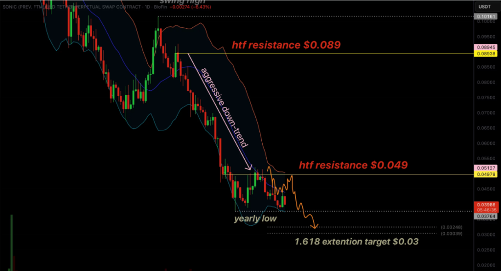 Sonic仍保持着明显的高点下移与低点下移模式,确认了更高时间框架上持续的看跌市场结构。