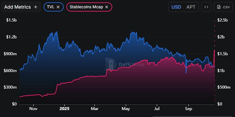 网络指标印证了这一趋势:Aptos流动性本周激增,从10月19日的11.1亿美元跃升至24小时后的16亿多美元。