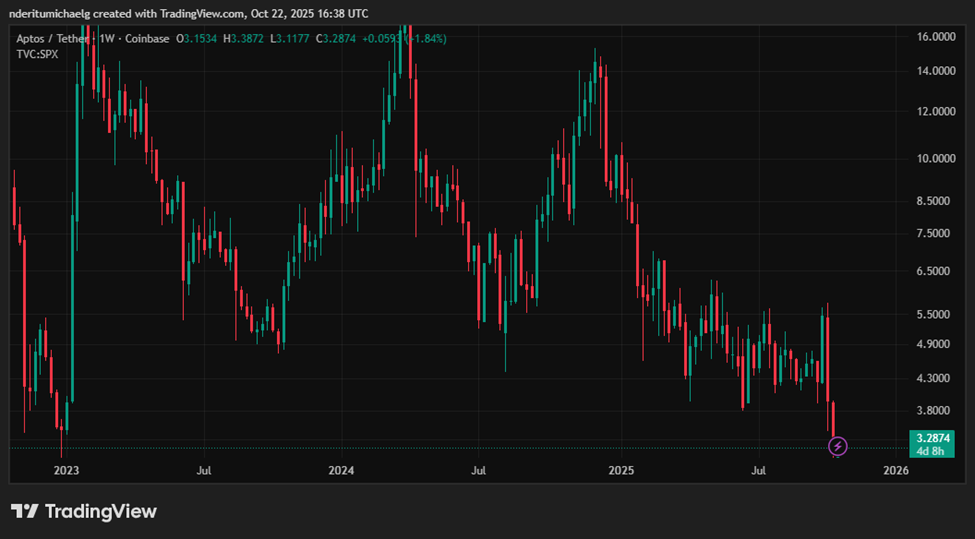 ,尽管网络取得突破,但APT上周仍跌至2025年新低,与其生态发展形成反差。