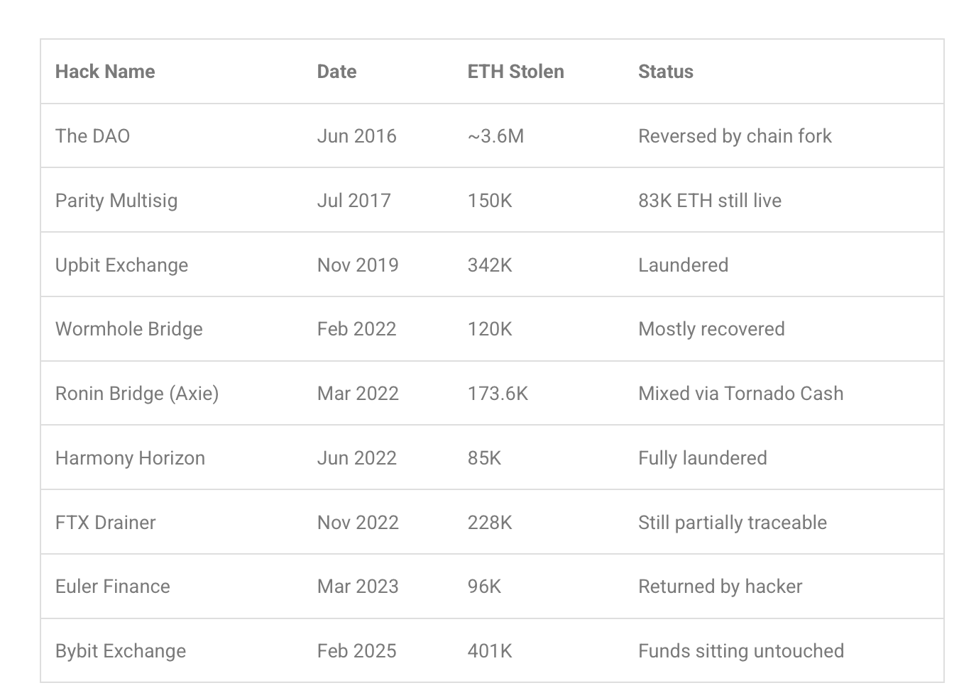 - ❌ 大多数其他被盗ETH已被兑换、混合或永久丢失。