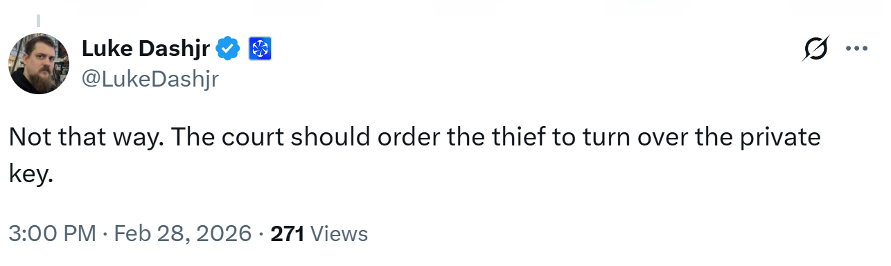 用户Samson表示:“如果这些比特币能通过任何机制被移动,我将主张取回自己应得的份额。作为债权人,我从破产清算中仅收回约15%的比特币残值……我支持通过法院命令追索这些资产。”