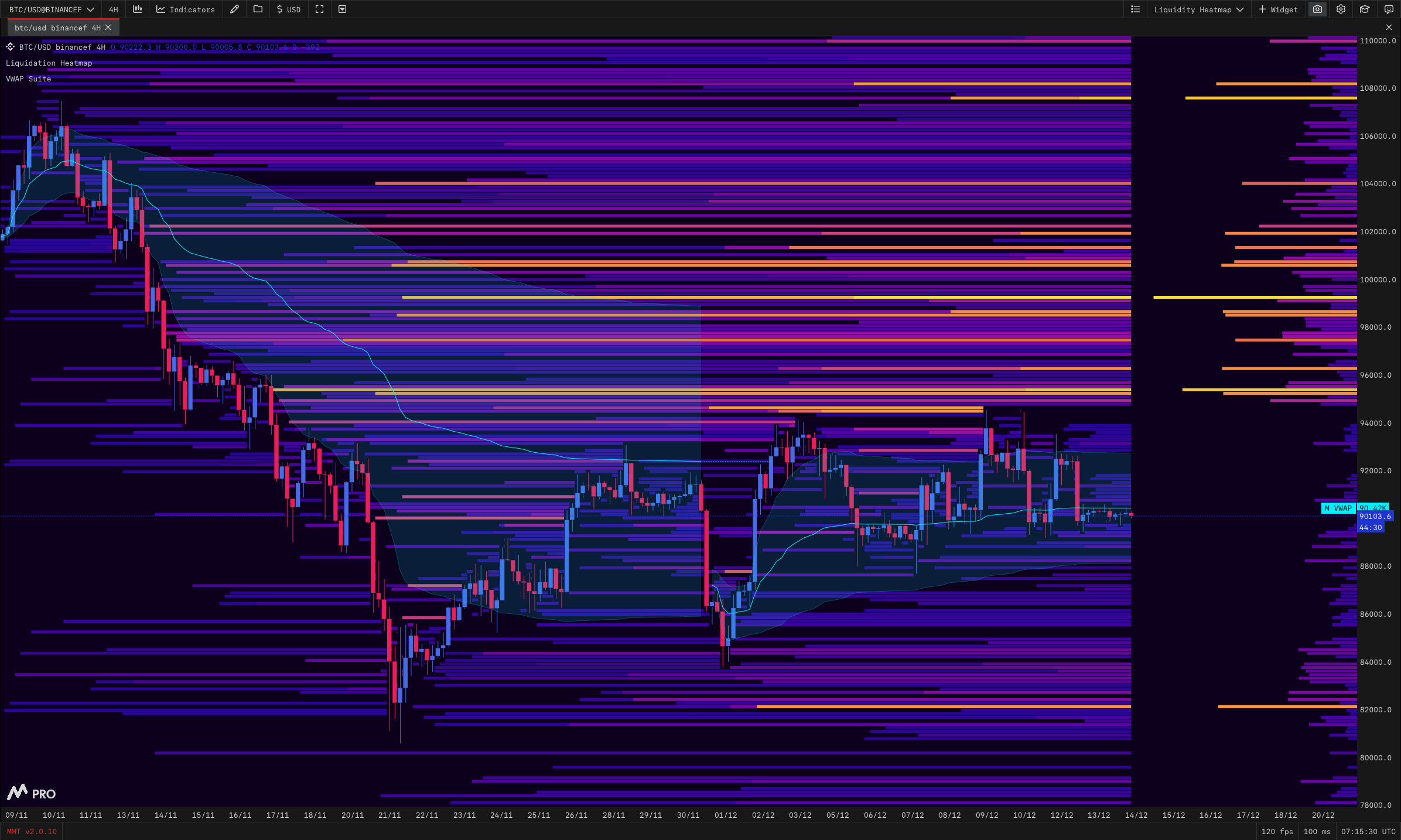 Columbus通过热力图展示潜在市场方向,指出94,000美元下方存在流动性积累,88,000至90,000美元区间形成新的扫荡区域。