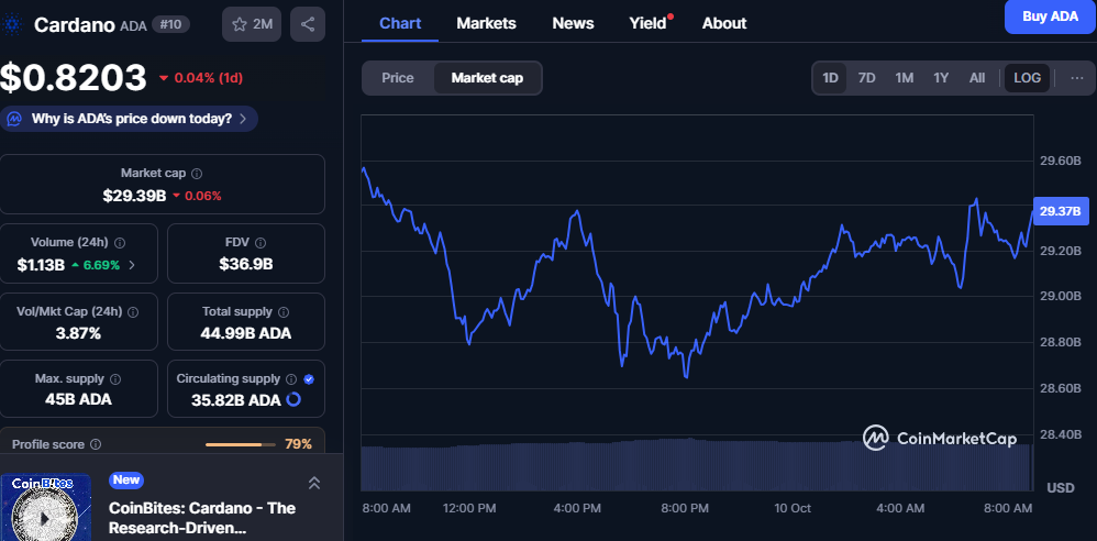 区间震荡暗藏波动:ADA现价0.8203美元,市值徘徊293.9亿美元,日内振幅2-3%