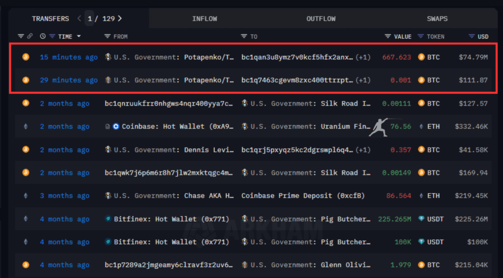 尽管处于政府停摆期,与美国政府关联的钱包今日仍将667枚比特币转移至新地址,引发市场对建立国家战略储备的猜测。