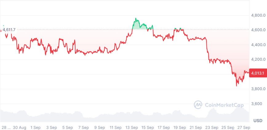 资金外流压力直接反映在价格上。同期ETH跌幅近10%,一度逼近4000美元关口。对于曾以爆发式增长闻名的资产而言,这种降温趋势表明机构资金流正在重塑其市场表现。
