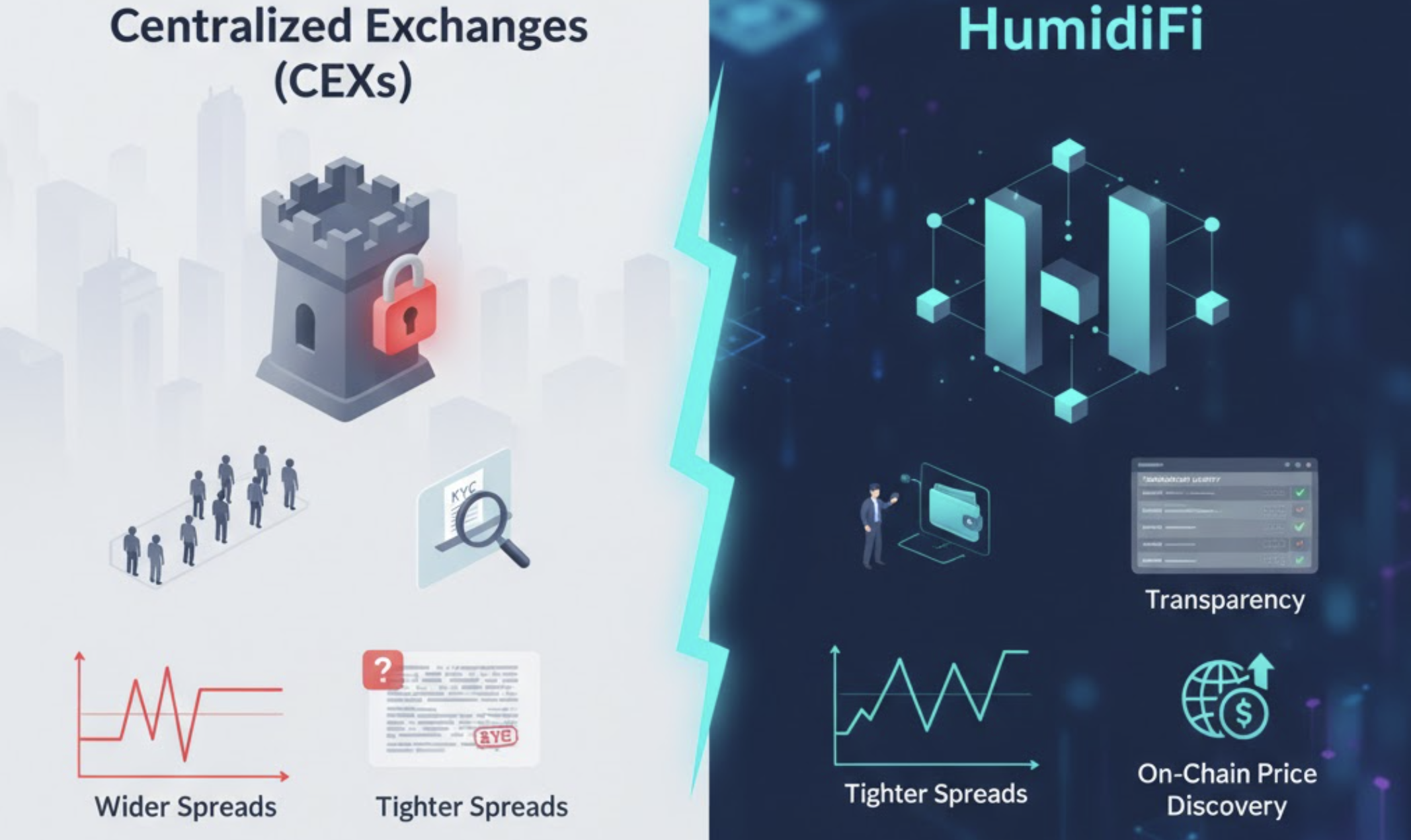 HumidiFi不仅在Solana生态的DEX中表现突出,相较中心化交易所也具显著优势: