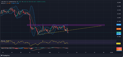 若OM能回升至0.1701美元上方,可能在0.1814美元附近遇到阻力,短期有望向0.20美元水平迈进。但如果未能守住0.158美元支撑区域,下跌趋势可能延伸至0.15美元或更低,特别是在市场情绪持续低迷的情况下。