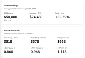 若公司今日晚些时候确实宣布新一轮比特币收购计划,其大型BTC储备将攀升至65万枚以上,这些资产的平均购入成本为74,431美元。