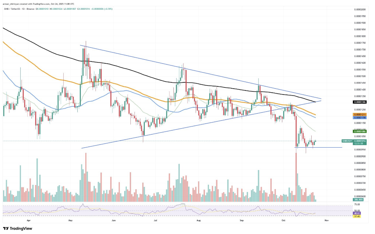 当前价格图表和链上数据显示,SHIB正处于多空僵持的冷冻期。该代币现报0.0000109美元,略高于0.0000095美元的关键局部支撑位。专家指出,该支撑位已多次经受考验,或正在构筑底部形态。